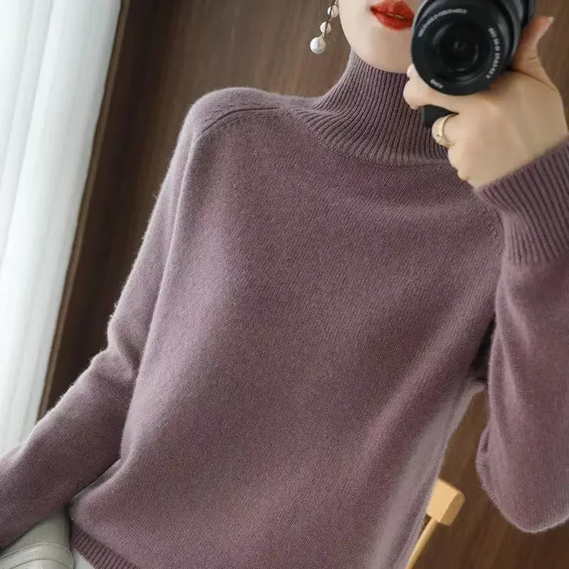 Turtleneck Pullover Fall/winter Cashmere Sweater Women Pure Color Casual Long-sleeved Loose Pullover Bottoming Women's